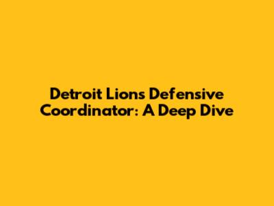 Detroit Lions Defensive Coordinator: A Deep Dive