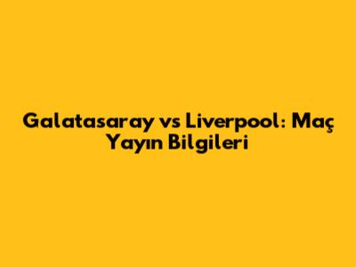 Galatasaray Vs Liverpool: Maç Yayın Bilgileri