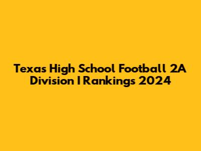 Hey guys! Are you ready for some Texas high school football? Specifically, let's dive deep into the 2A Division I rankings for the 2024 season. This is where the heart of small-town Texas truly shines, showcasing incredible talent, dedication, and community spirit. Let's break down what makes these rankings so important, who the teams to watch are, and what to expect as the season unfolds. Understanding the dynamics of these rankings involves a look at several key factors. A team's win-loss record obviously plays a huge role, but it's not the only thing. The strength of schedule matters just as much, if not more. Beating a team with a strong record carries more weight than defeating a team that consistently loses. Head-to-head results are critical, especially when teams are close in the rankings. A victory against a rival can significantly boost a team's standing. Offensive and defensive statistics provide insights into a team's overall performance. Teams that consistently score high and prevent their opponents from scoring tend to climb the rankings quickly. Finally, coaching strategies and team dynamics contribute to a team's success. A well-coached team with strong leadership can often outperform expectations. The rankings serve as a useful tool for evaluating team performance, predicting potential playoff matchups, and generating excitement among fans and players alike. Each week, the rankings are updated based on the latest game results and statistics, providing a dynamic snapshot of the competitive landscape in 2A Division I football.