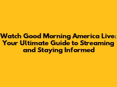 Watch Good Morning America Live: Your Ultimate Guide